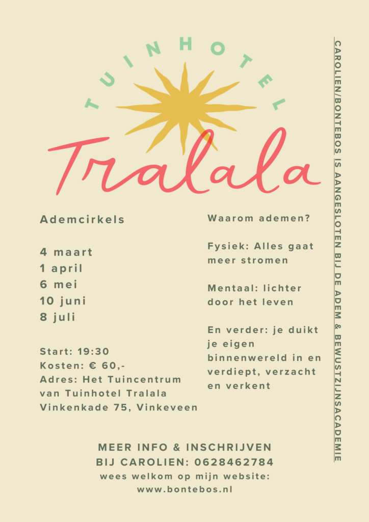 Ik deel graag over mijn enthousiasme voor het ademwerk en ik vind het essentieel de ‘ademtool’ door te geven.