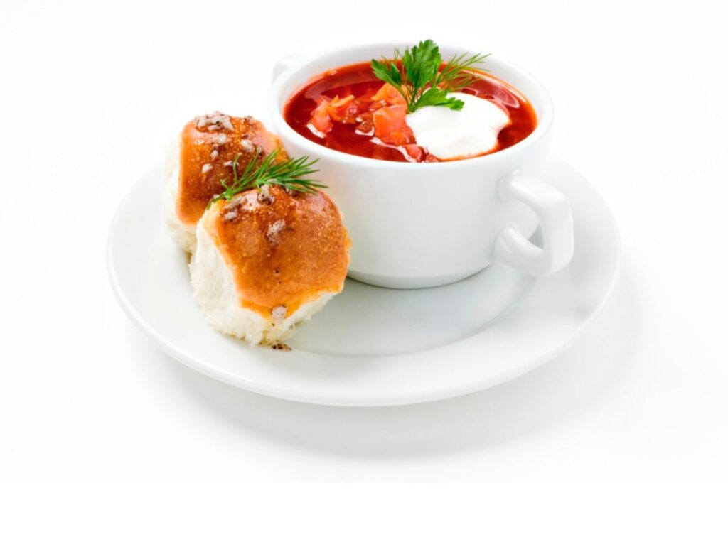 Борщ з пампушками, голубці з грибами та млинці з маком і вишнями